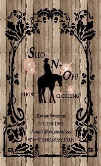 | SHO-N-OFF SHOW CLOTHING Karma Swanson 775-530-1901 Reno, Nevada email- SHONOFF@SBCGLOBAL.NET |