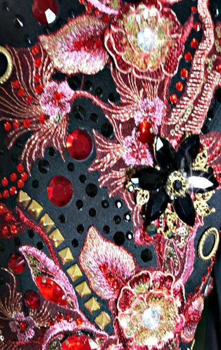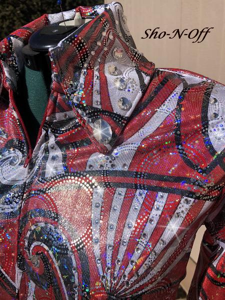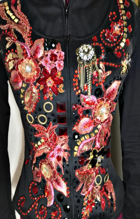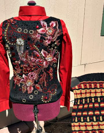 | THIS UPPER LEVEL VEST HAS IT ALL AND COMES WITH A GORGEOUS SHOW STOPPIN CUSTOM PAD- USED BUT IN PERFECT CONDITION- BLACK STRETCH SUPPORT BASE VEST WITH RED,GOLD AND PINKISH LACE. TONS OF OVER SIZED SEW ON CRYSTALS THAT DO NOT SHOW WELL IN PICS. YOU WILL WOW THEM WITH THIS ONE! THIS VEST IS PRICED TO SELL - I WORE THIS ONE ONCE AT SILVER DOLLAR IN VEGAS AND WON TRAIL POINTS- IT IS PRICED AS USED BUT IN PERFECT NEW CONDITION- IN FACT I ADDED MORE JEWELS TO IT AFTER!!! I CAN TAKE INWARD IF NEEDED-PLEASE PM ME FITTING QUESTIONS NEED THE UNDER SHIRT- PLEASE LET ME KNOW I CAN GET ONE FOR YOU- IN BLACK OR RED IF NEEDED BUST-42 WAIST- 35 SALE PRICED INCLUDING A GORGEOUS MATCHING PAD (REMEMBER WE DO FREE LAYAWAY) HIP- 43 LENGTH- EMAIL QUESTIONS PLEASE REFER TO WINNING IN RED |